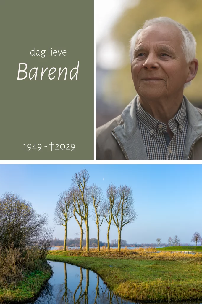 Rouwkaart man met foto van de polder en ruimte voor eigen foto