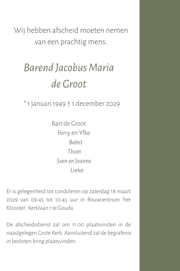 Moderne rouwkaart voor een man met verschillende fotokaders voor het plaatsen van een eigen foto, hobby, sport of beroep. (1268)