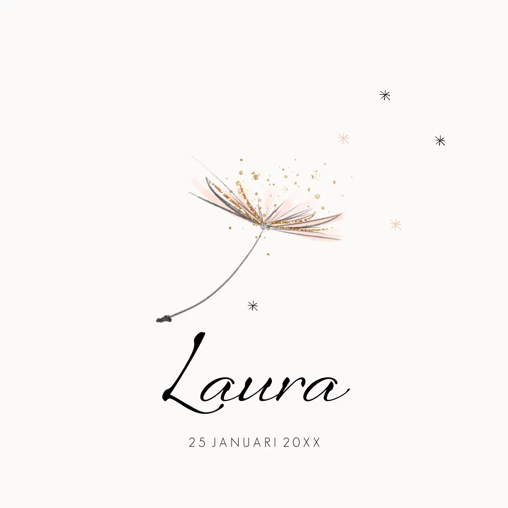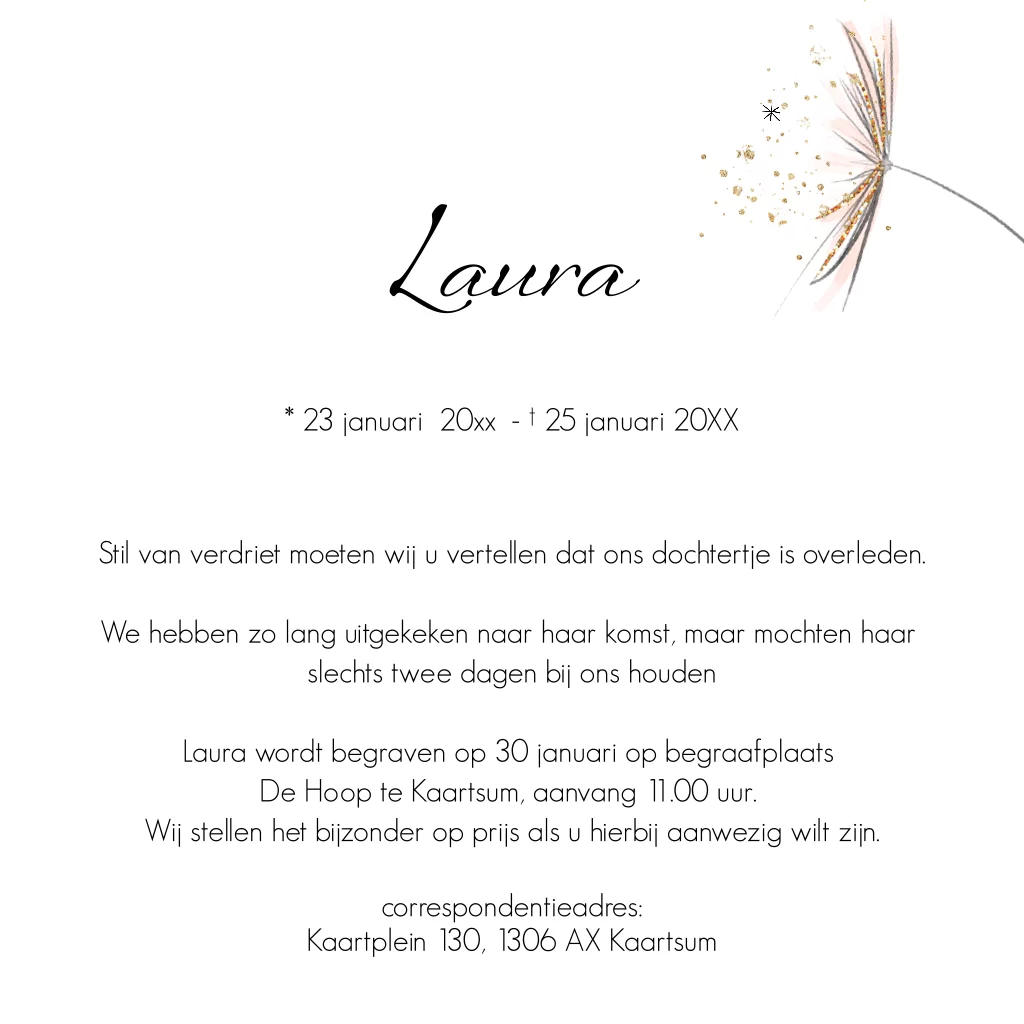 Rouwkaartje voor een meisje met paardenbloem en sterretjes. (1070)