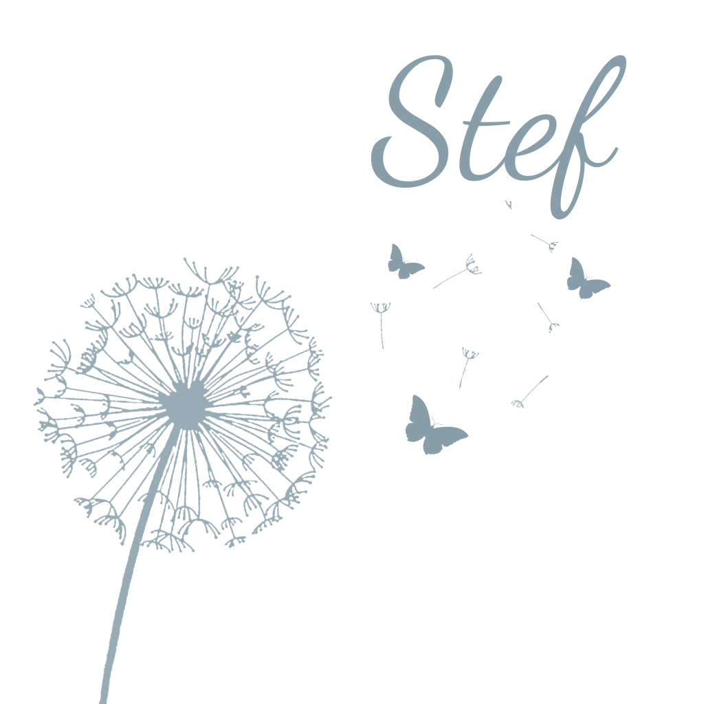 Rouwkaart met dandylion/paardebloem en vlinder op rustige achtergrond. Pas eenvoudig de kleuren aan! (712)