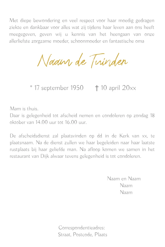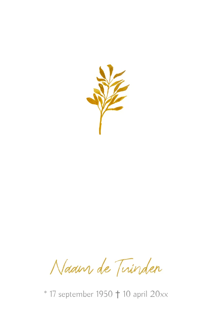 Rouwkaart met eco papier look achtergrond en goud kleurig takje. (1194)