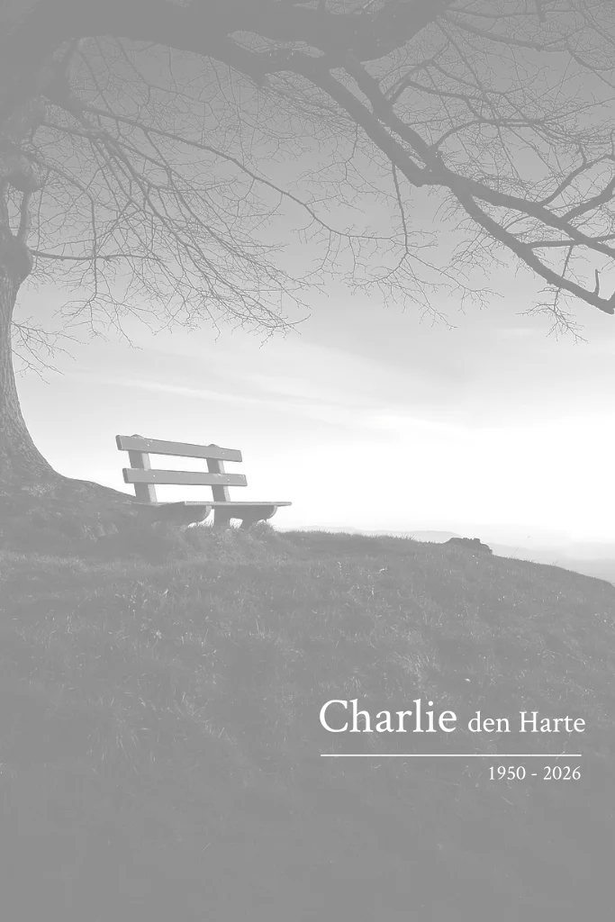 Rouwkaart met een bank onder een boom in zwart wit. De foto is ook te vervangen door een eigen versie. (1022) TIP: Bekijk onze ruime collectie rouwkaarten via > Rouwkaarten