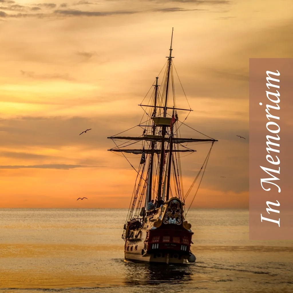 Rouwkaart voor een boten liefhebber / fanaat. Vervang de foto van een boot eenvoudig zelf door een eigen foto. In memoriam kan verplaatst worden.