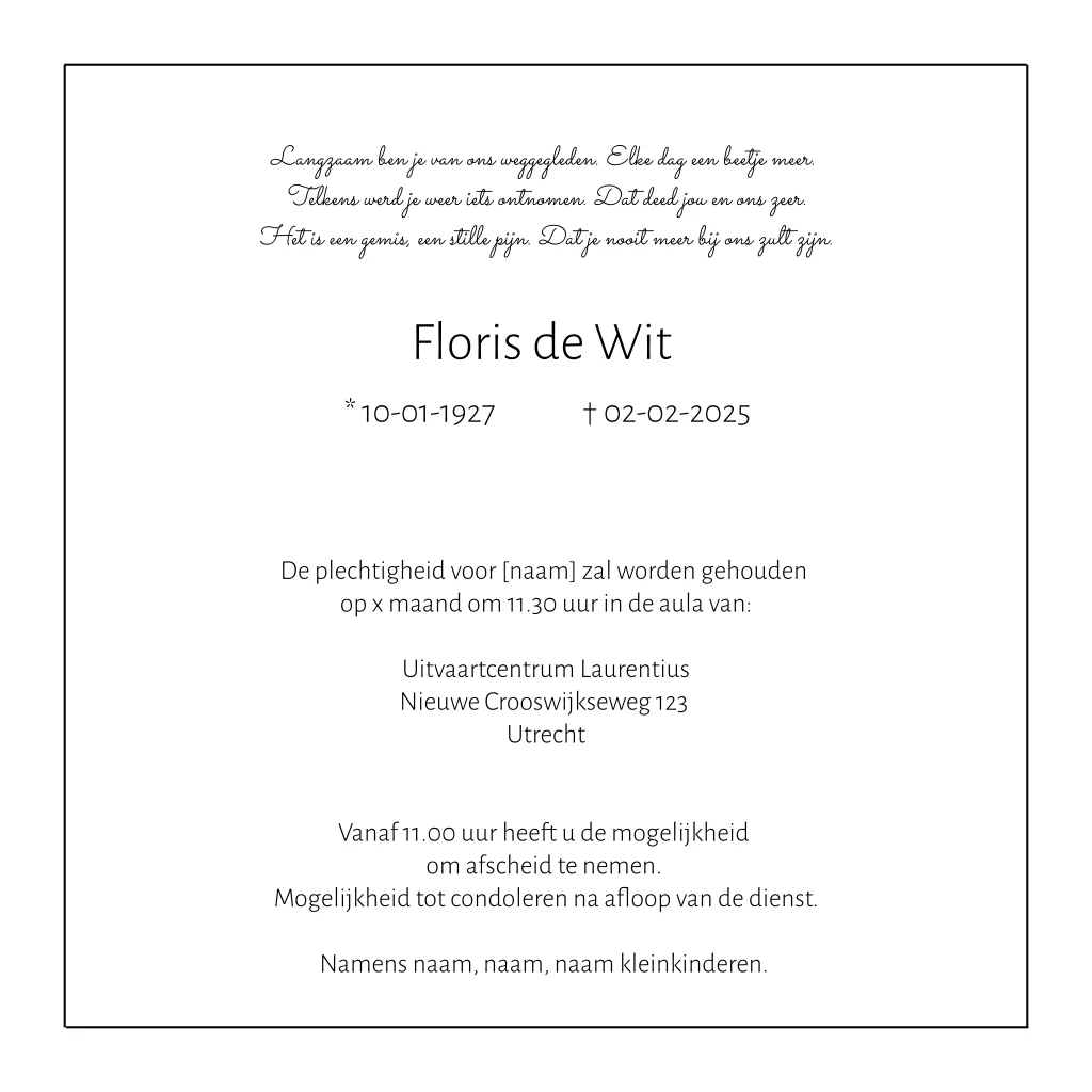 Rouwkaart met foto en rouwrand