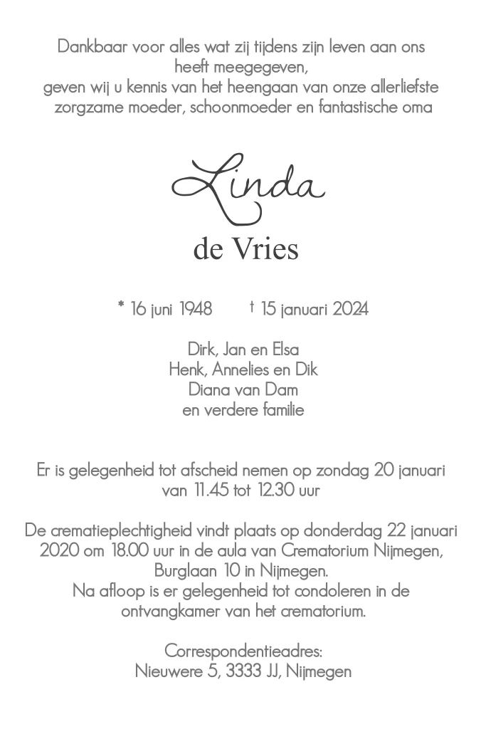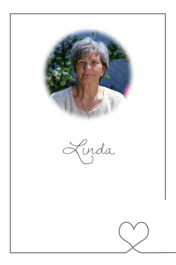 Rouwkaart vrouw met foto en rouwrand met hartje