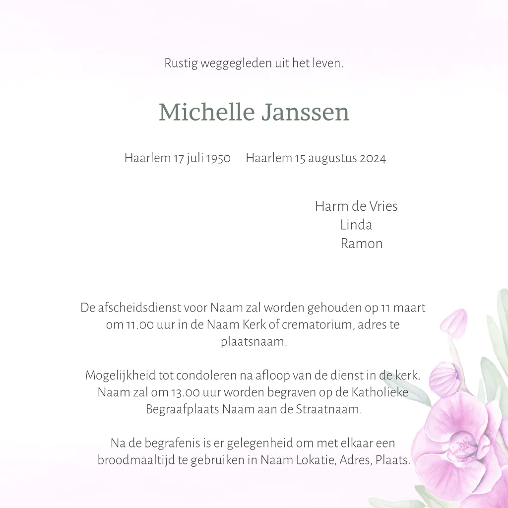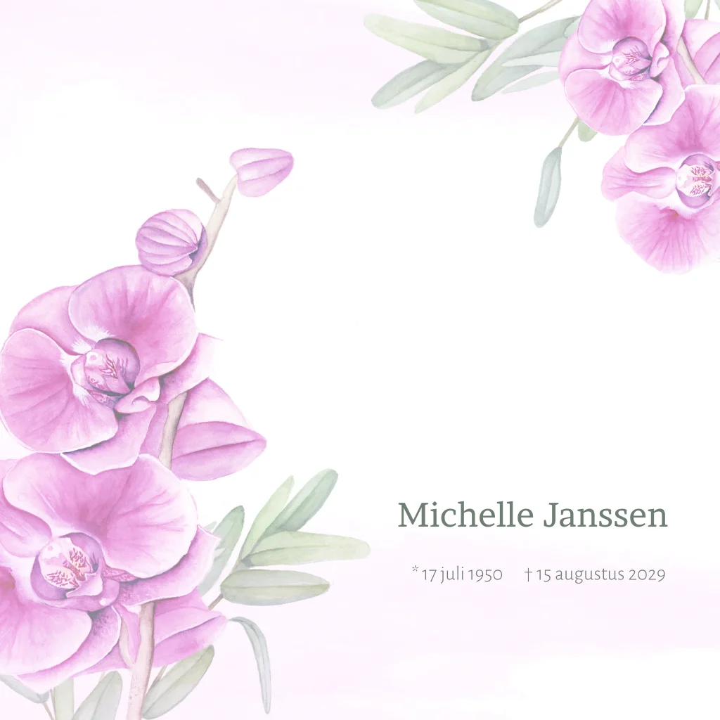 Rouwkaart met geschilderde orchidee in paars roze