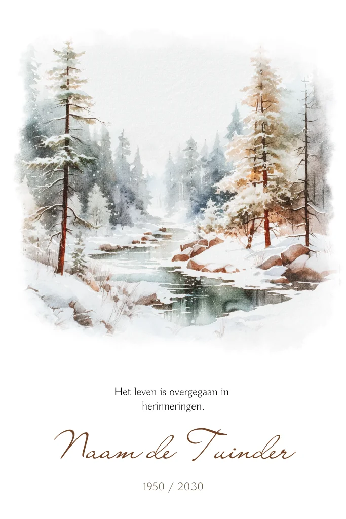 Rouwkaart met hand geschilderde landschap bomen in de winter. Winterse landschappen rouwkaarten (1150)