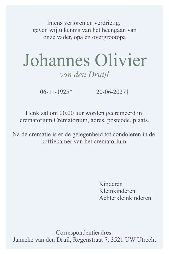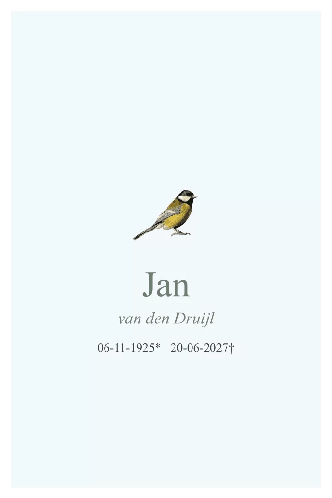 Simpele rouwkaart met een tekening van een koolmees. (1127)
