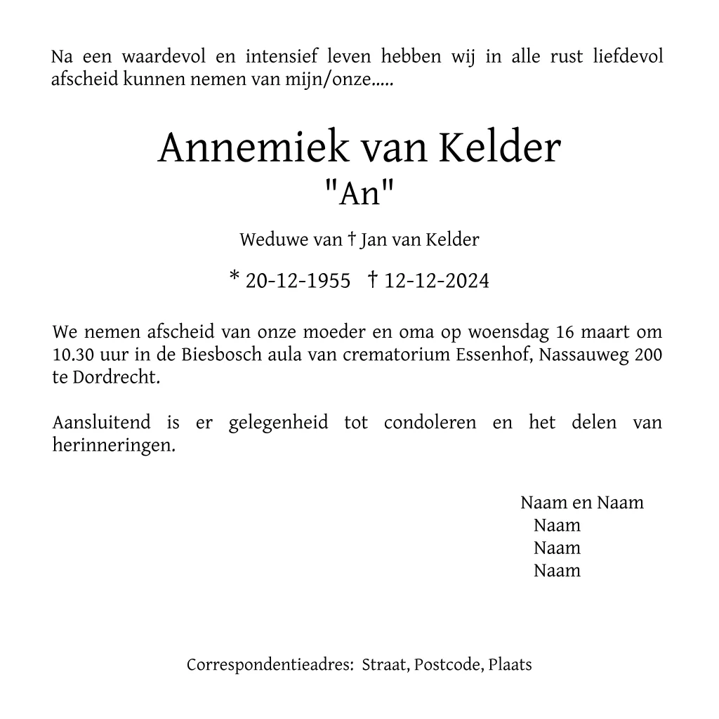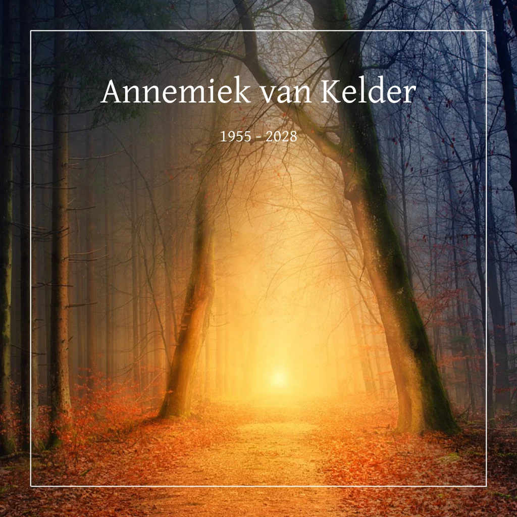 Rouwkaart met licht in het woud bos duisternis en een beetjes sprookjesactig.