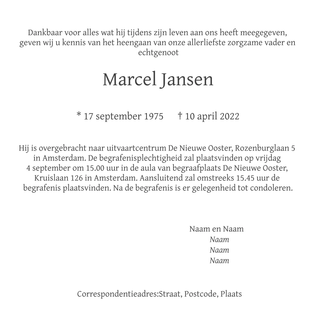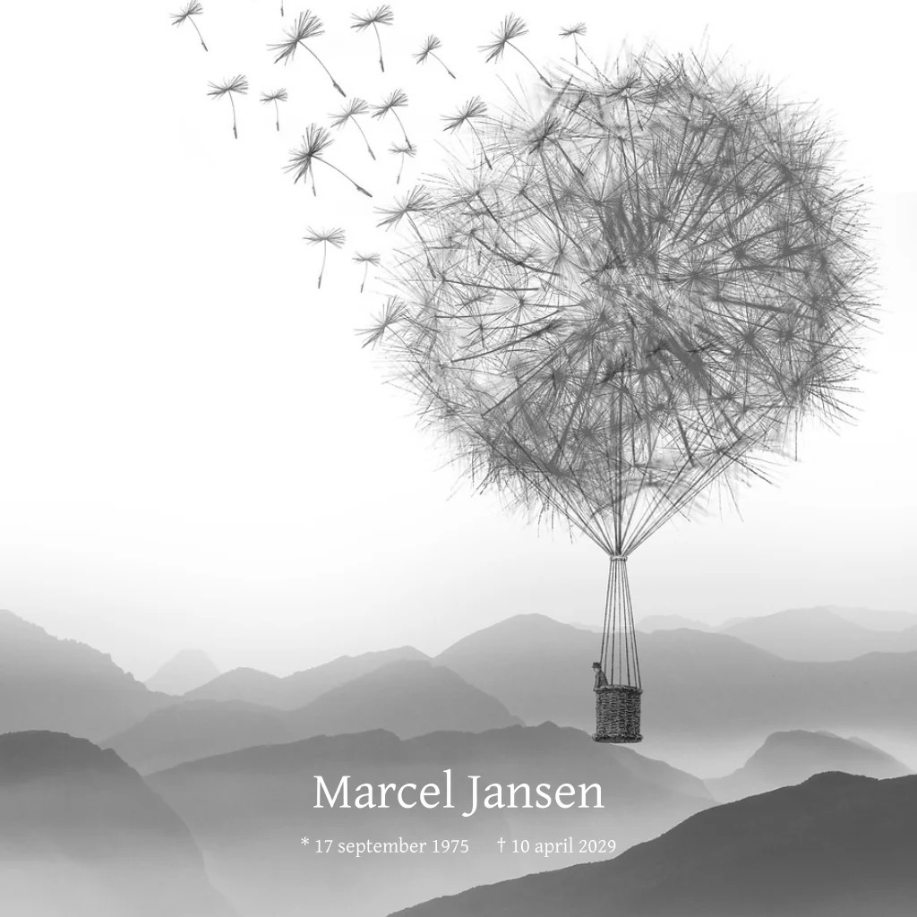 Rouwkaart met luchtballon in de vorm van een paardenbloem