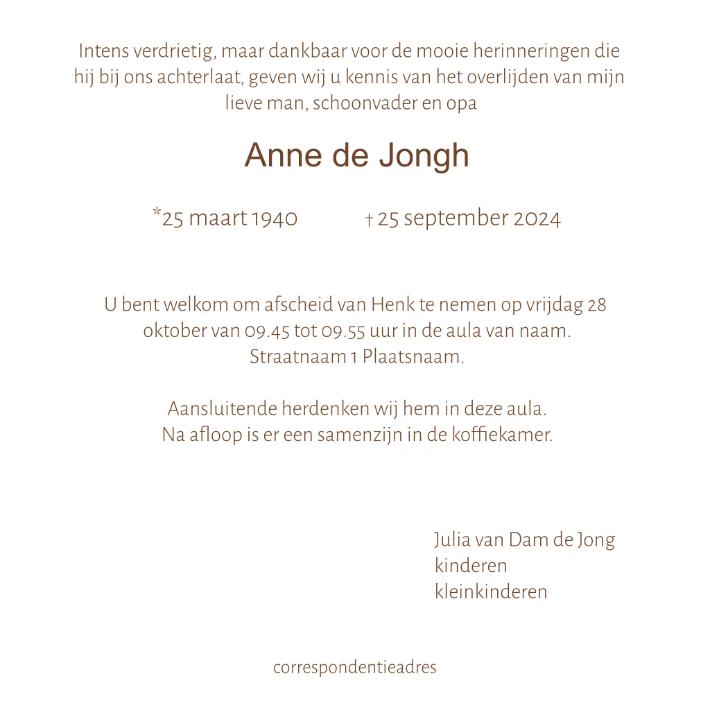 Rouwkaart met sfeervolle foto bos