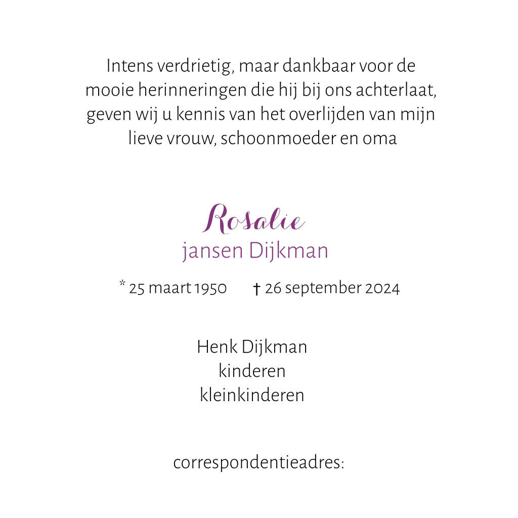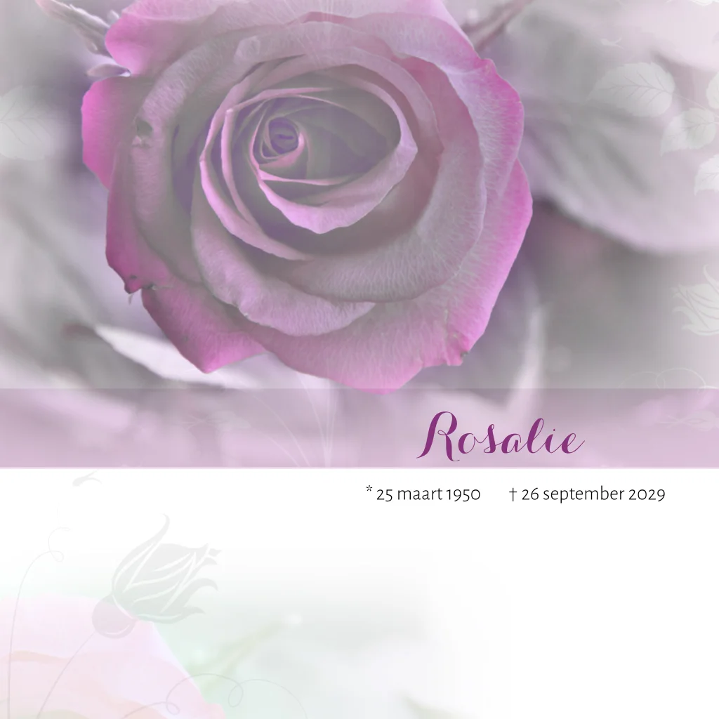 Rouwkaart met mooie stijlvolle roos in paars en grijstinten. (654)