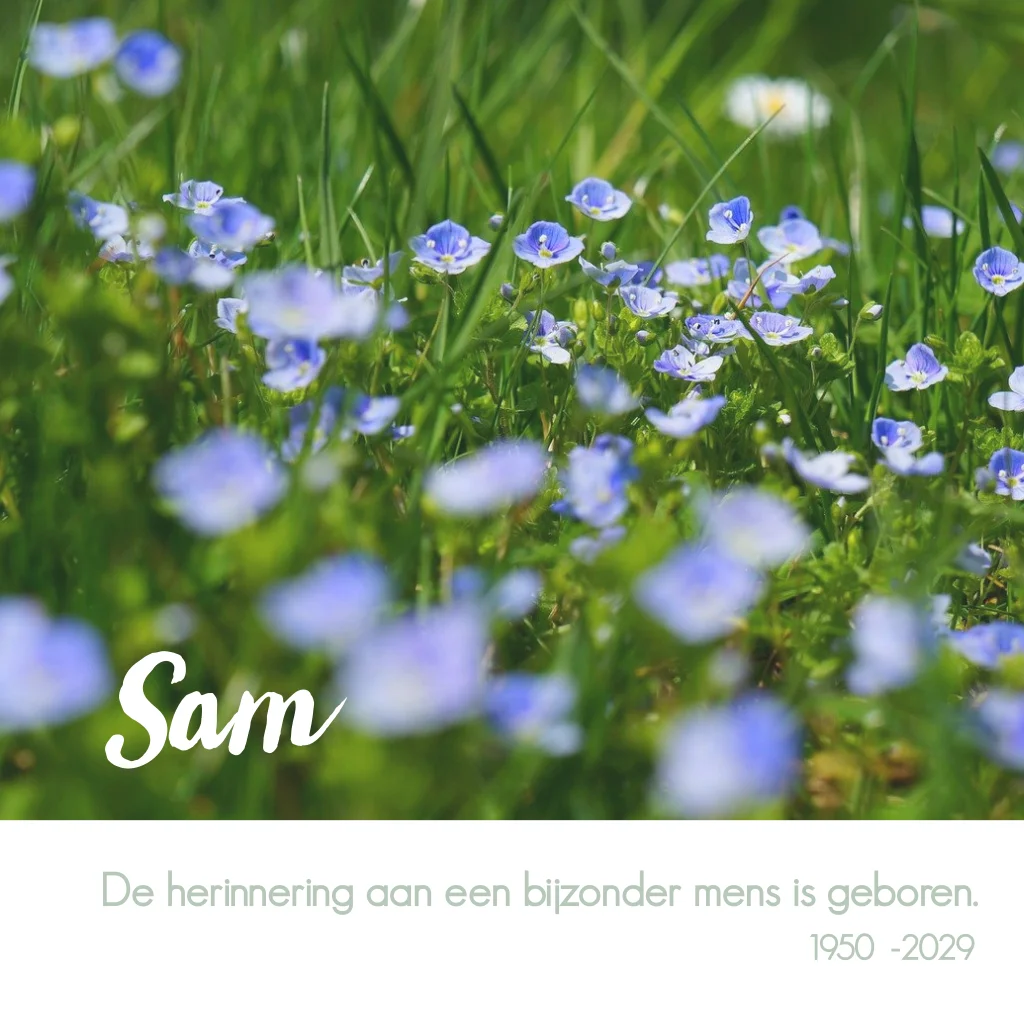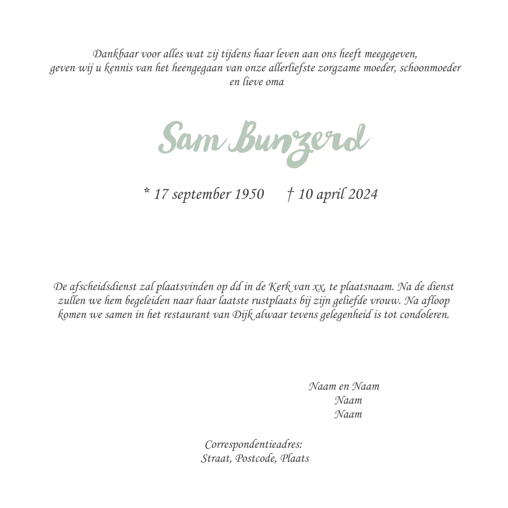 Rouwkaart met vergeet mij nietjes Je kunt deze kaart helemaal naar je eigen smaak aanpassen. (824)