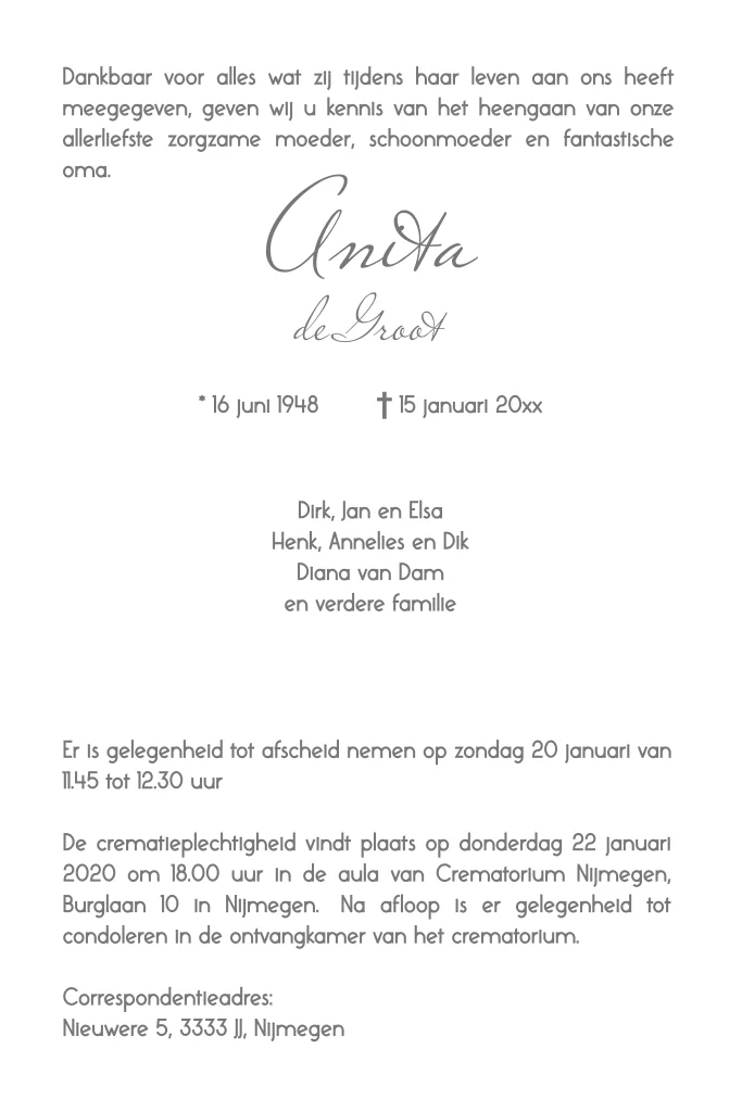 Stijlvolle rouwkaart met ruimte voor een eigen foto. Het rouwkader is ook te verwijderen.