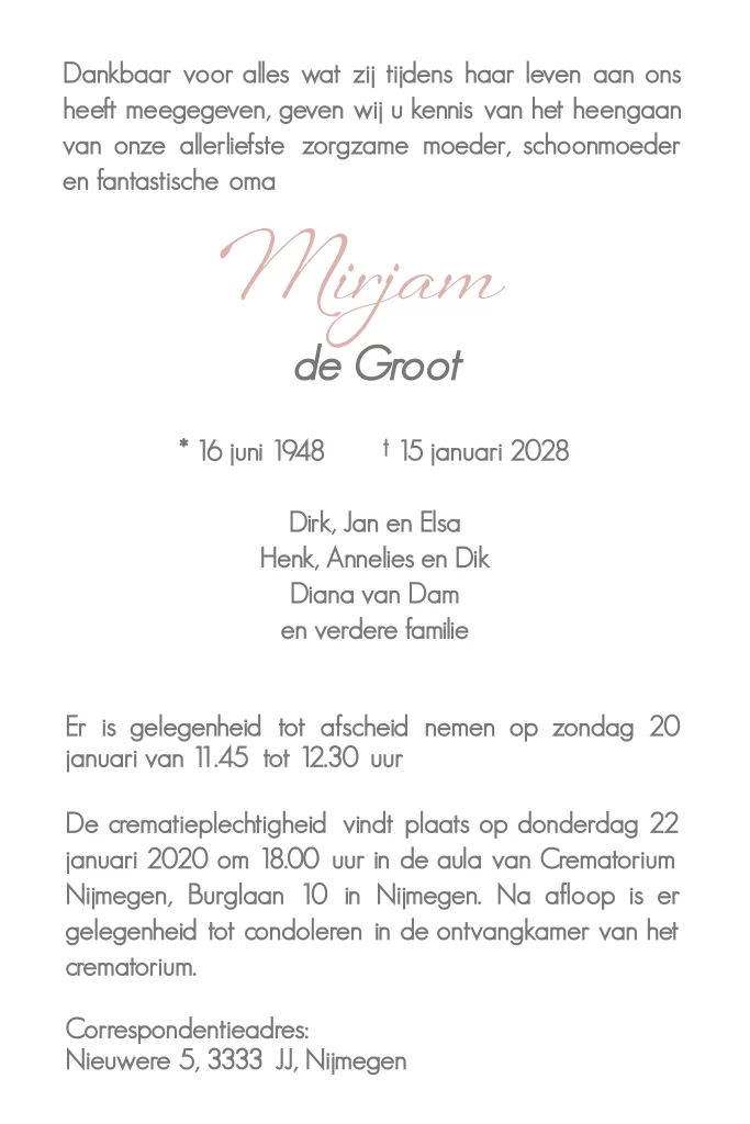Moderne rouwkaart met ruimte voor een eigen foto. Het rouwkader is ook te verwijderen.