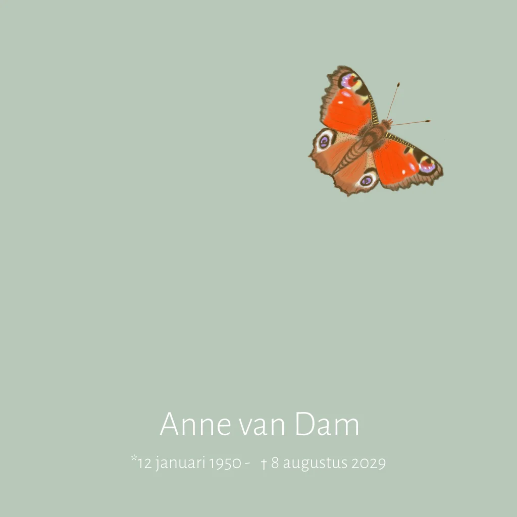 Rouwkaart met illustratie van een vlinder een dagpauwoog