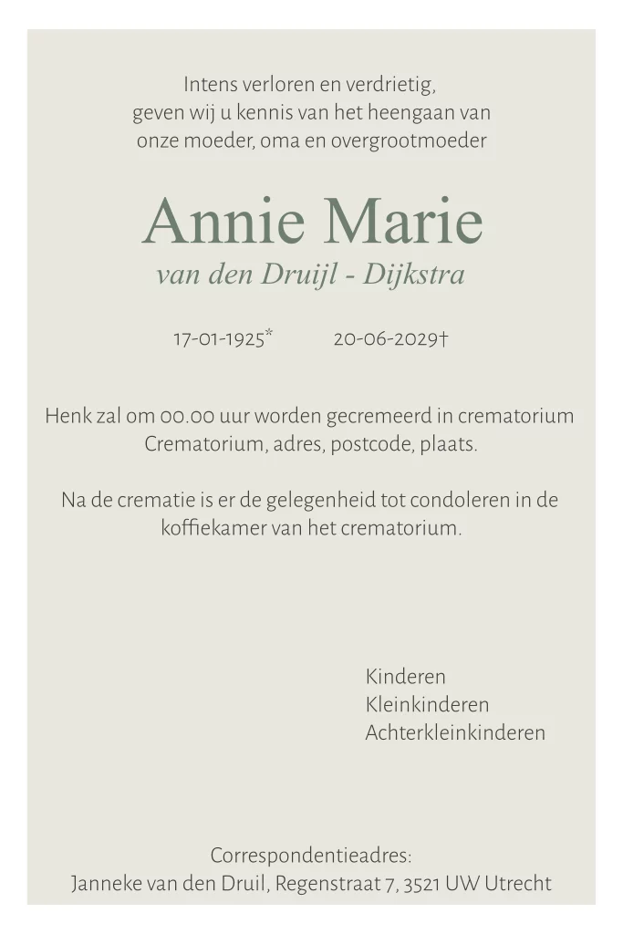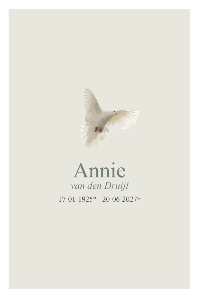 Rouwkaart met een aquarel tekening van een witte duif. (1213)