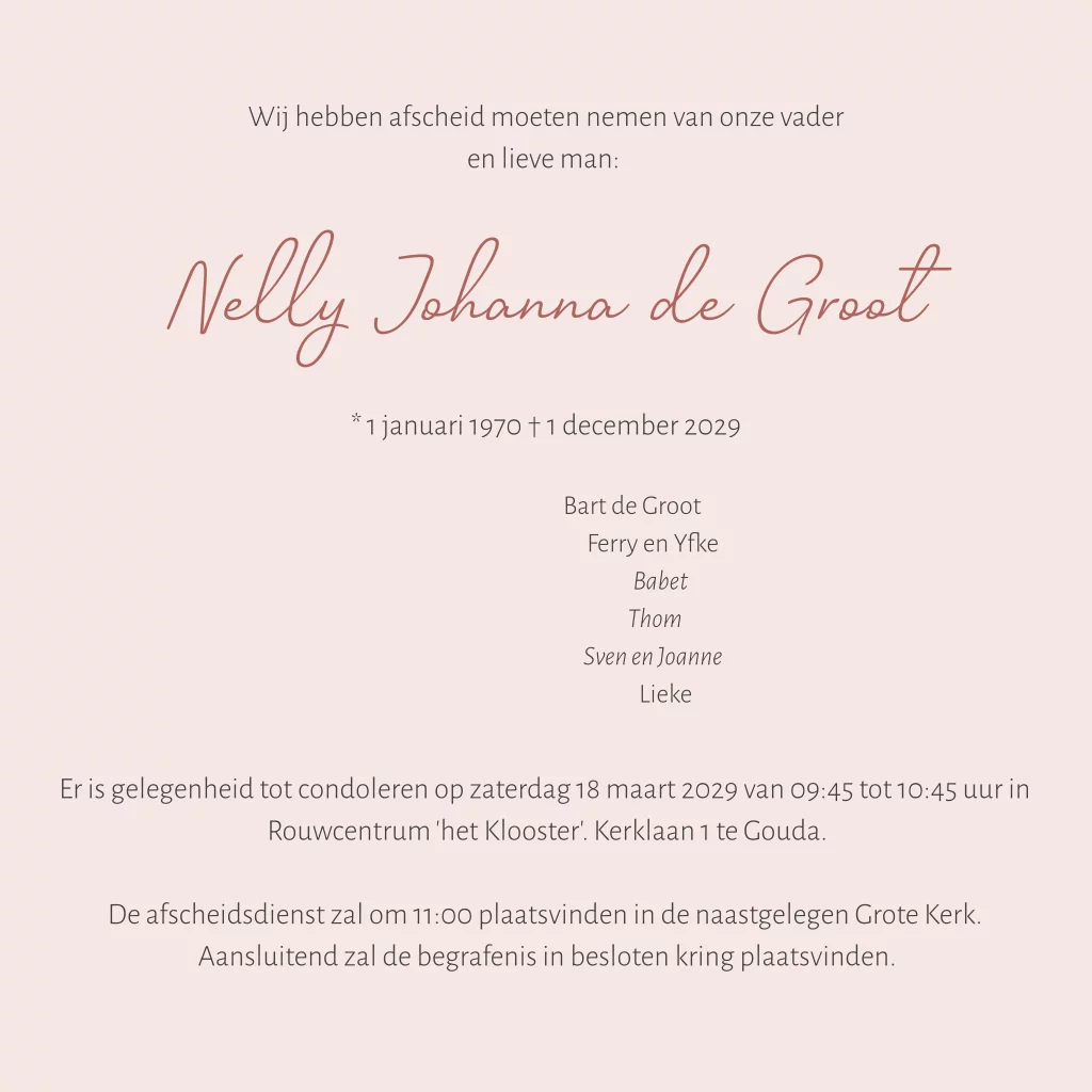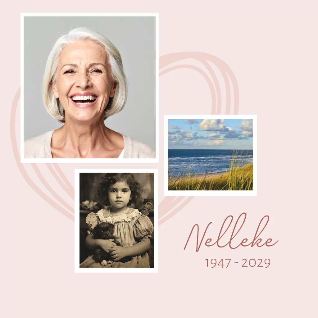 Een persoonlijke rouwkaart met collage en foto. Pas het ontwerp naar wens aan in onze editor. (555555)
