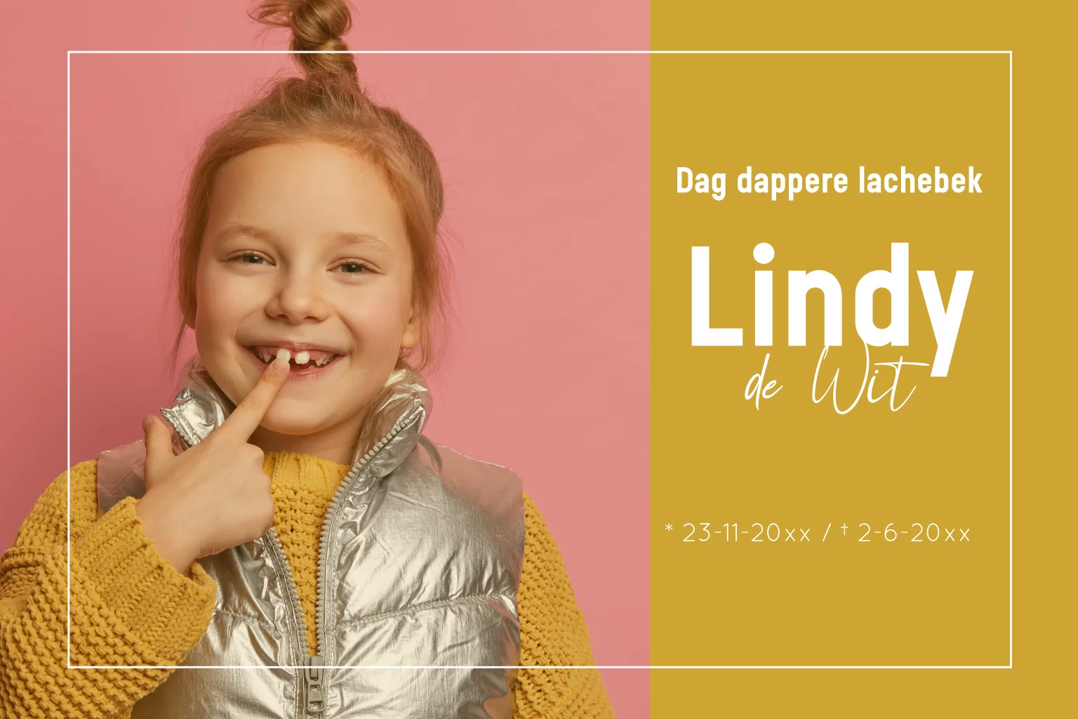 Rouwkaart modern voor een kind meisje met eigen foto