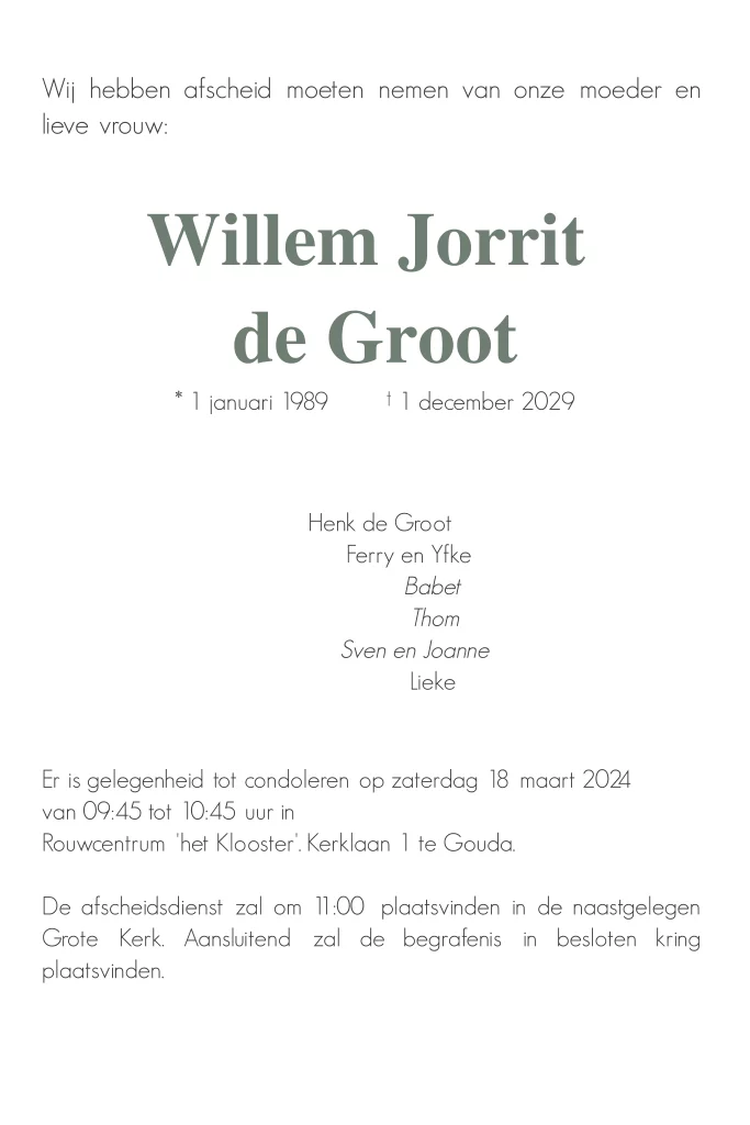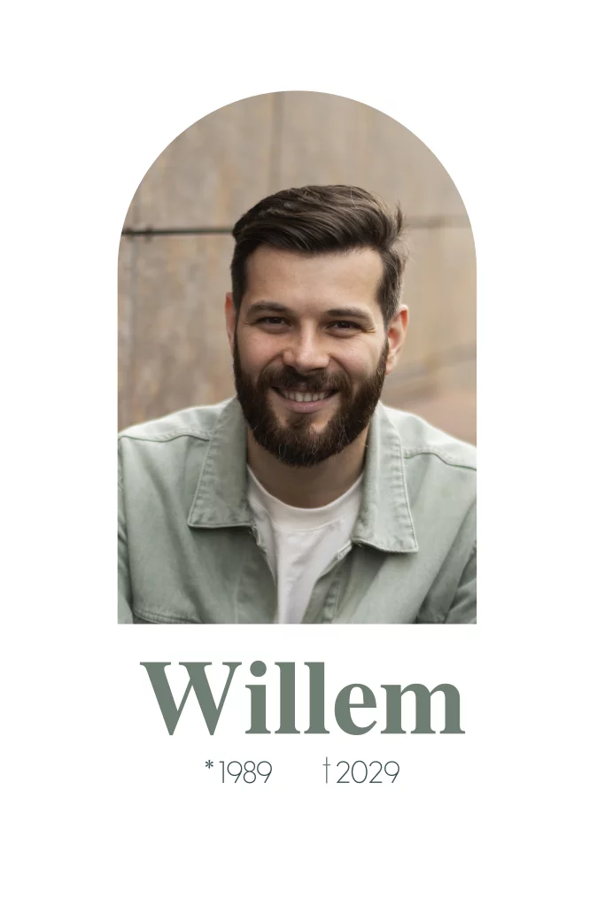 Rouwkaart voor een man met boogvormig fotokader