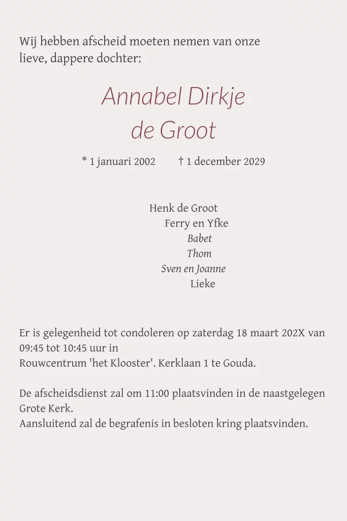 Rouwkaart voor een vrouw met ruimte voor een grote foto. (1186)