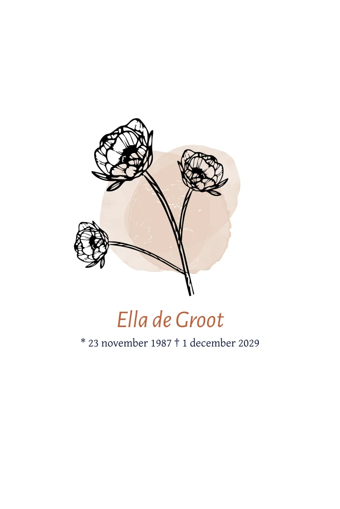Rouwkaart voor een vrouw met bloemen, rozen. (1164)
