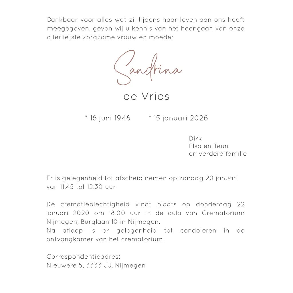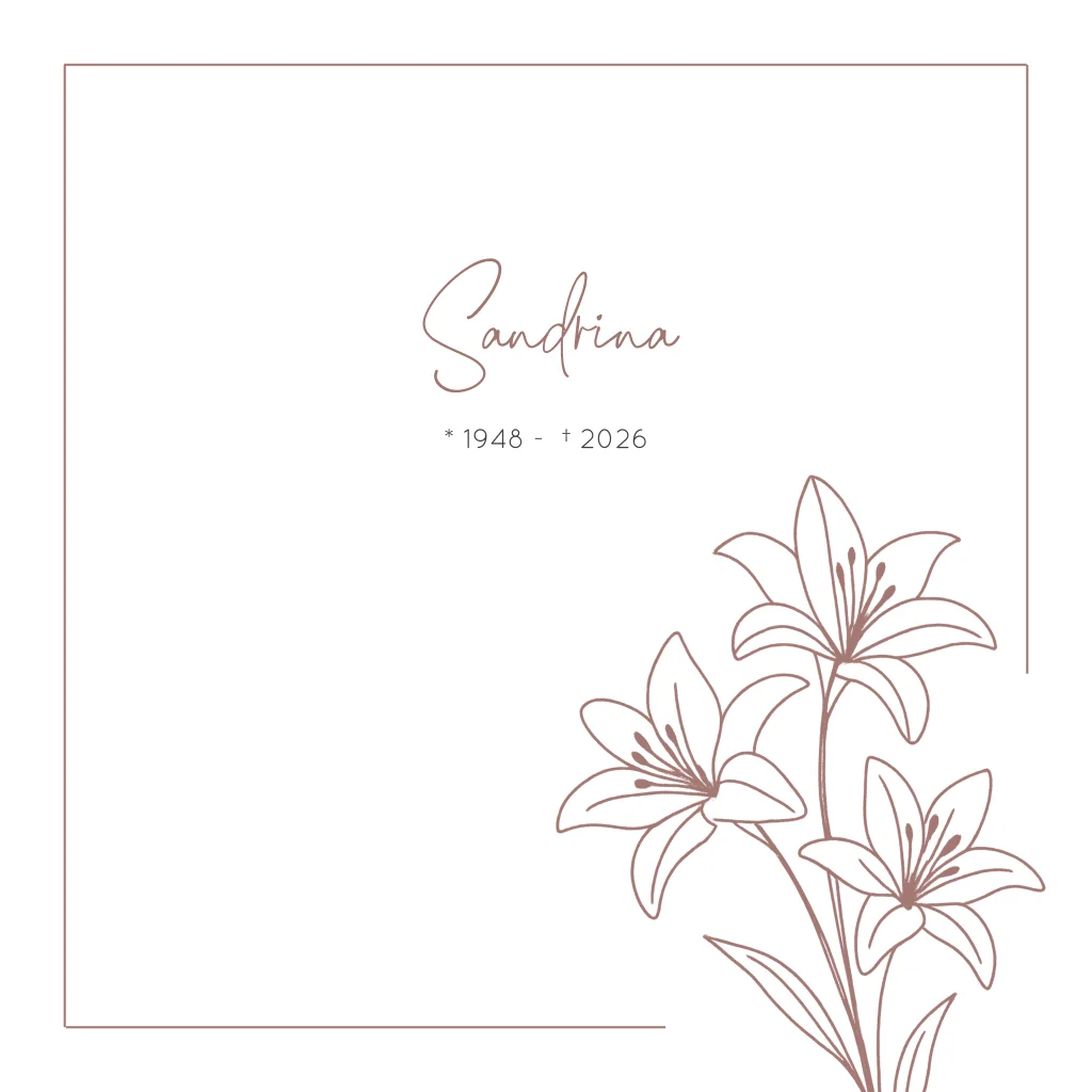 Rouwkaart moeder vrouw modern met lijntekening lelie