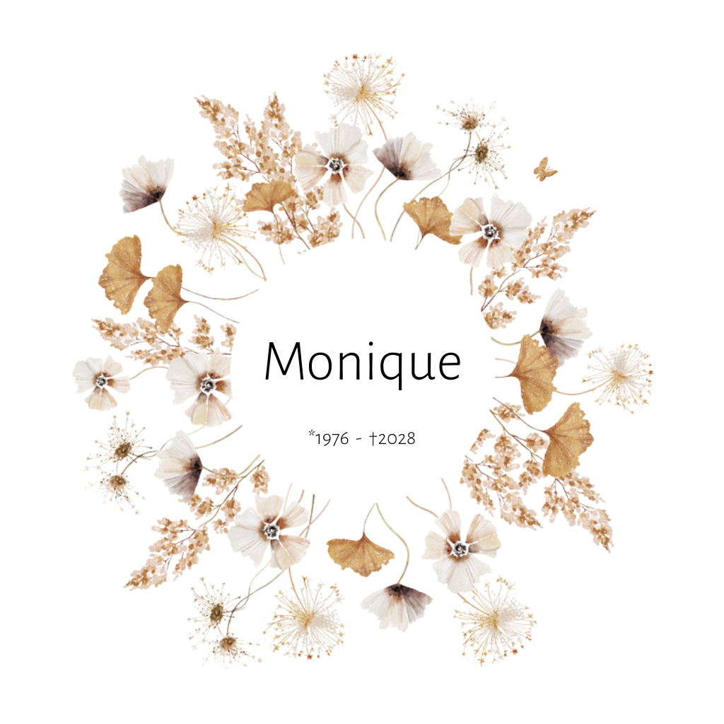 Rouwkaart voor een vrouw met een krans van aardetint bloemen