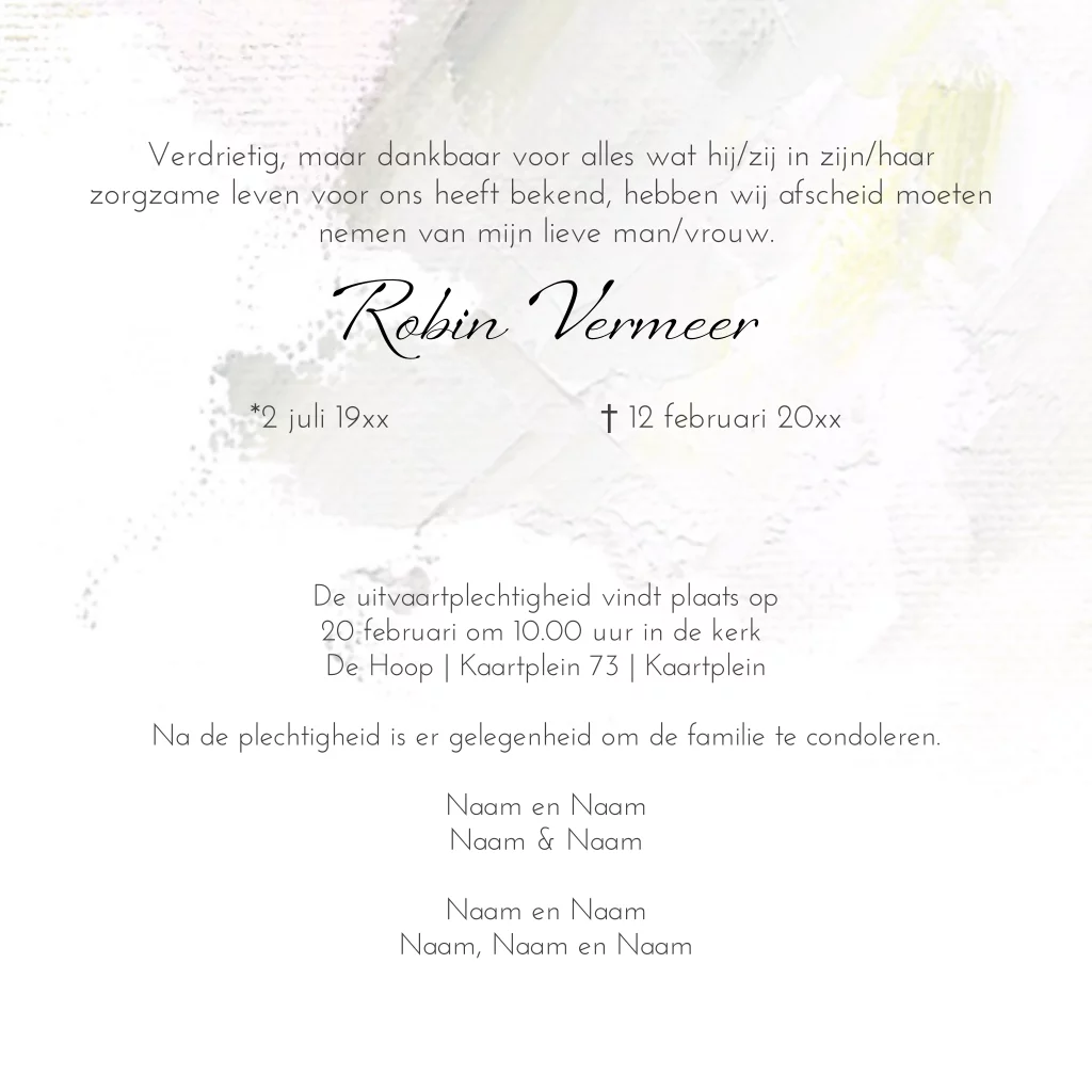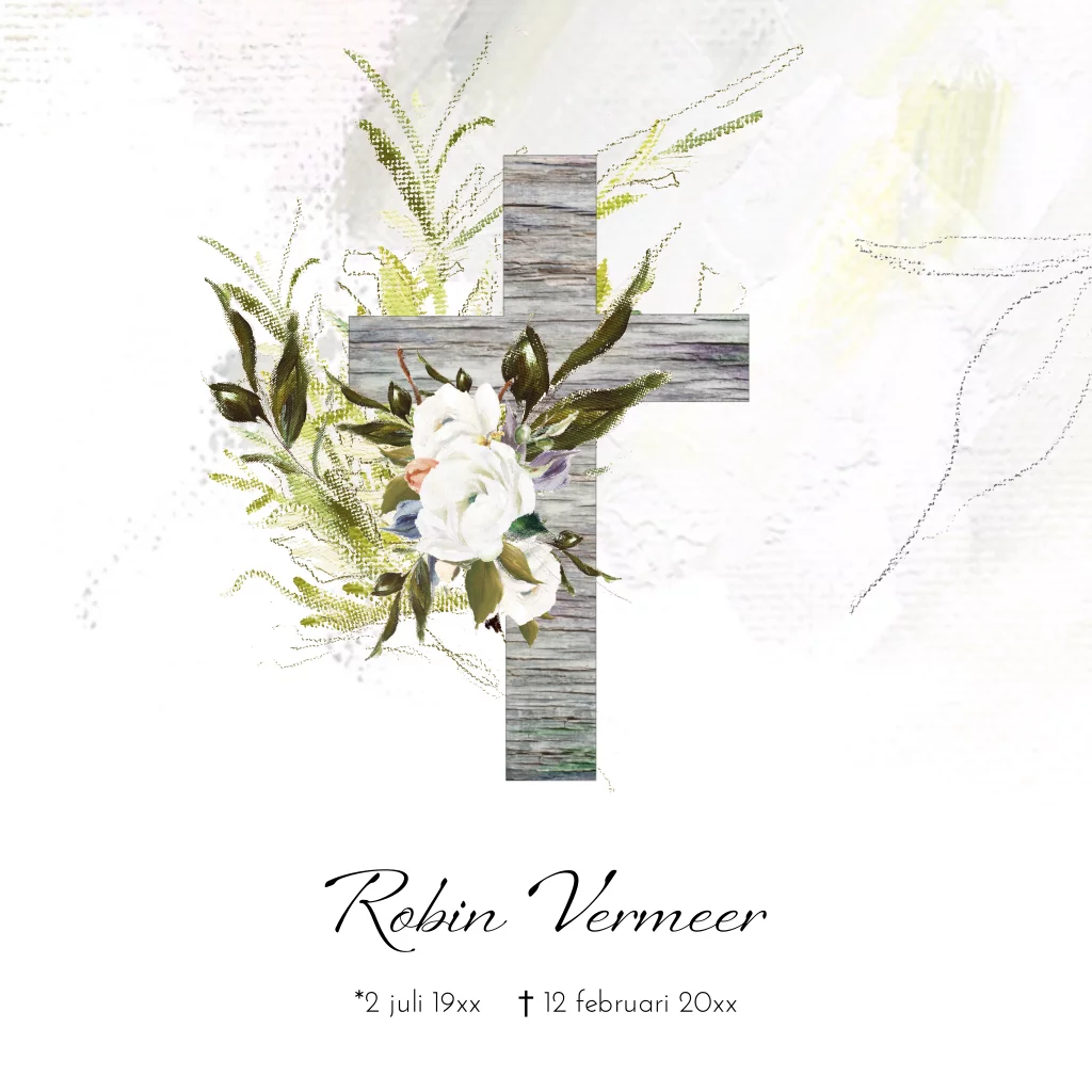 Rouwkaart olieverf bloemen en kruis