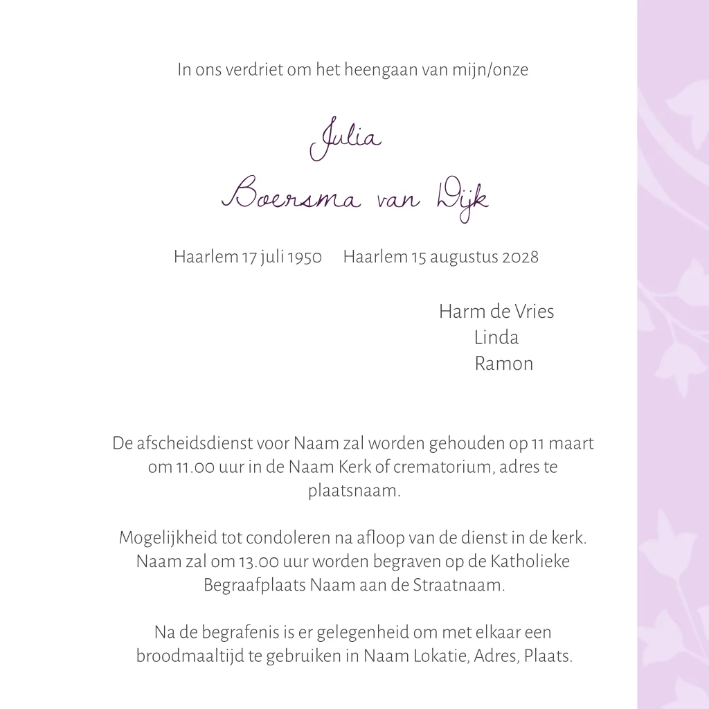 Rouwkaart orchidee paars