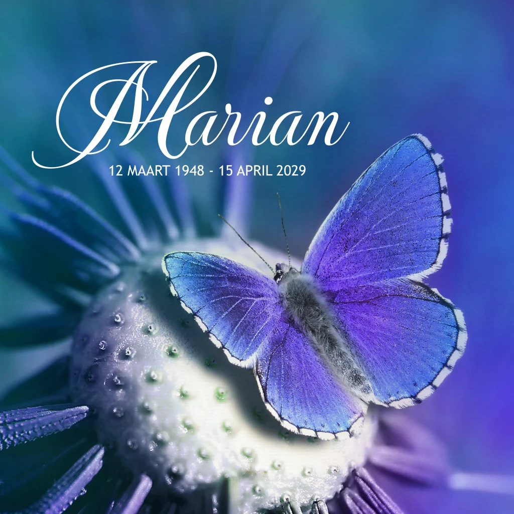 Rouwkaart paars blauwe tinten met vlinder. (776)