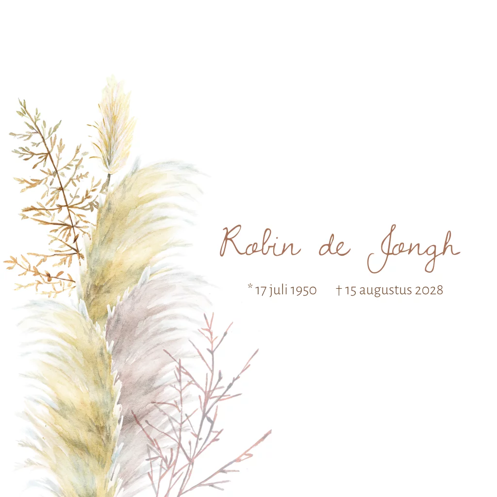 Mooie Rouwkaart met pampagras in pastel kleuren