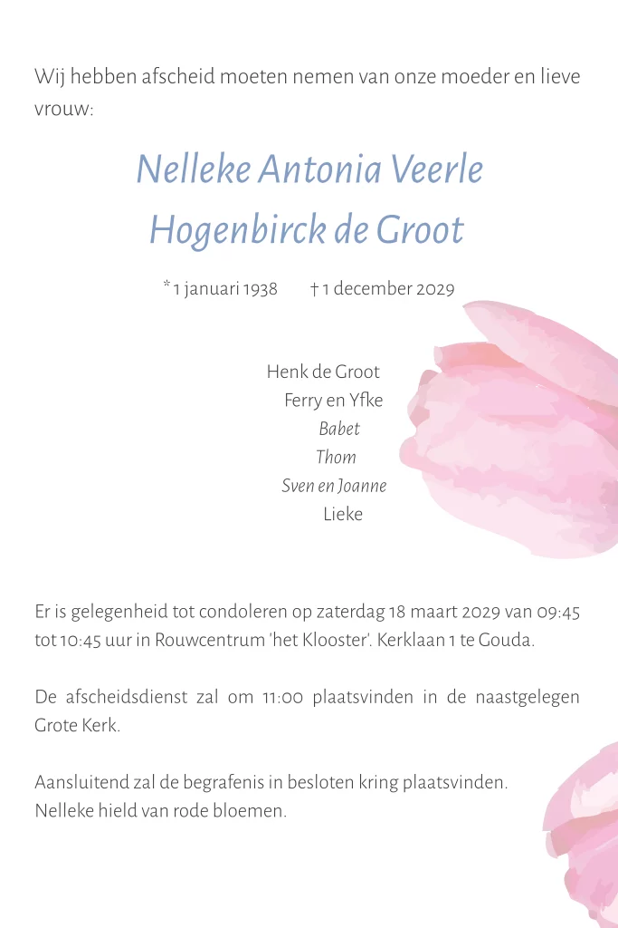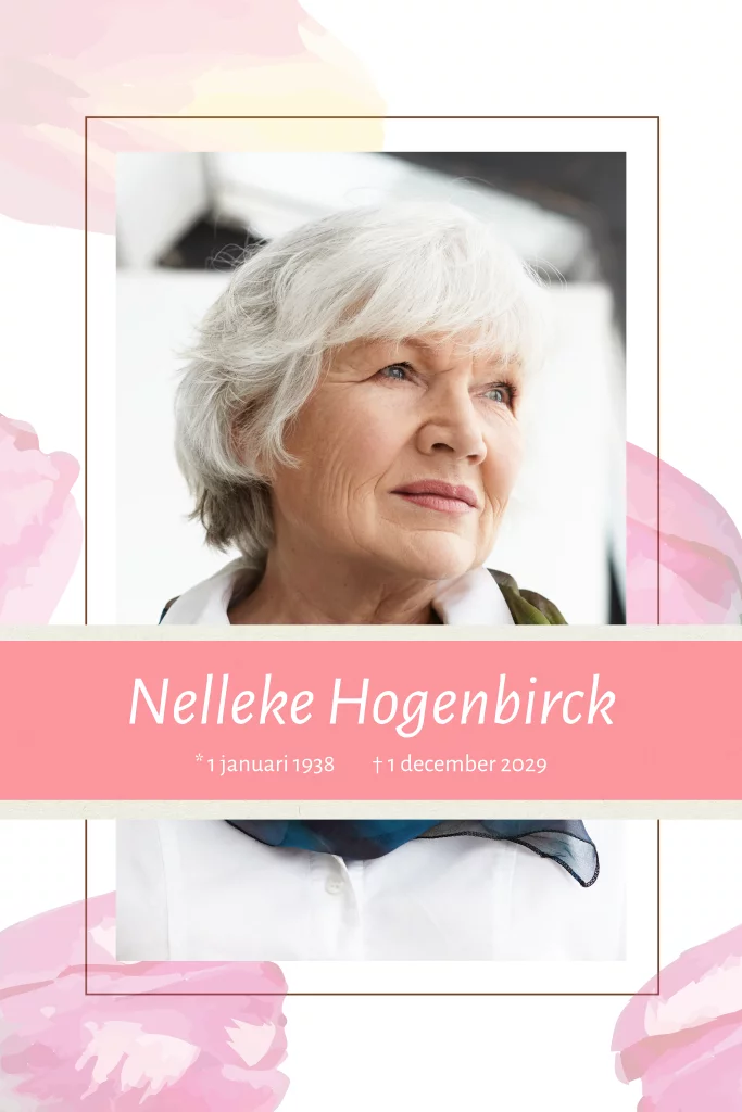 Rouwkaart met ruimte voor een eigen foto en roze tulpen in watercolor. (1218)