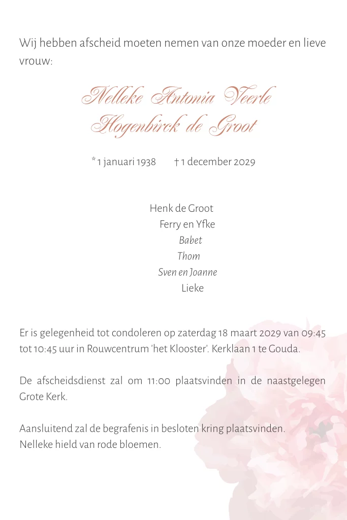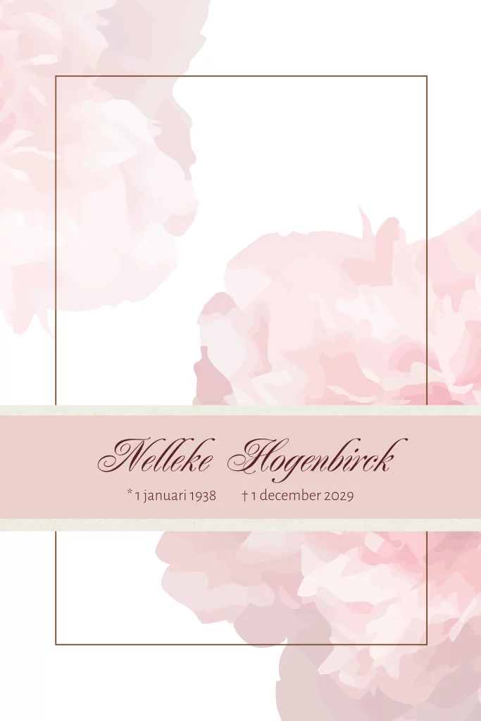 Rouwkaart met een aquarel van een pioenroos en een rouwrand. (1195)