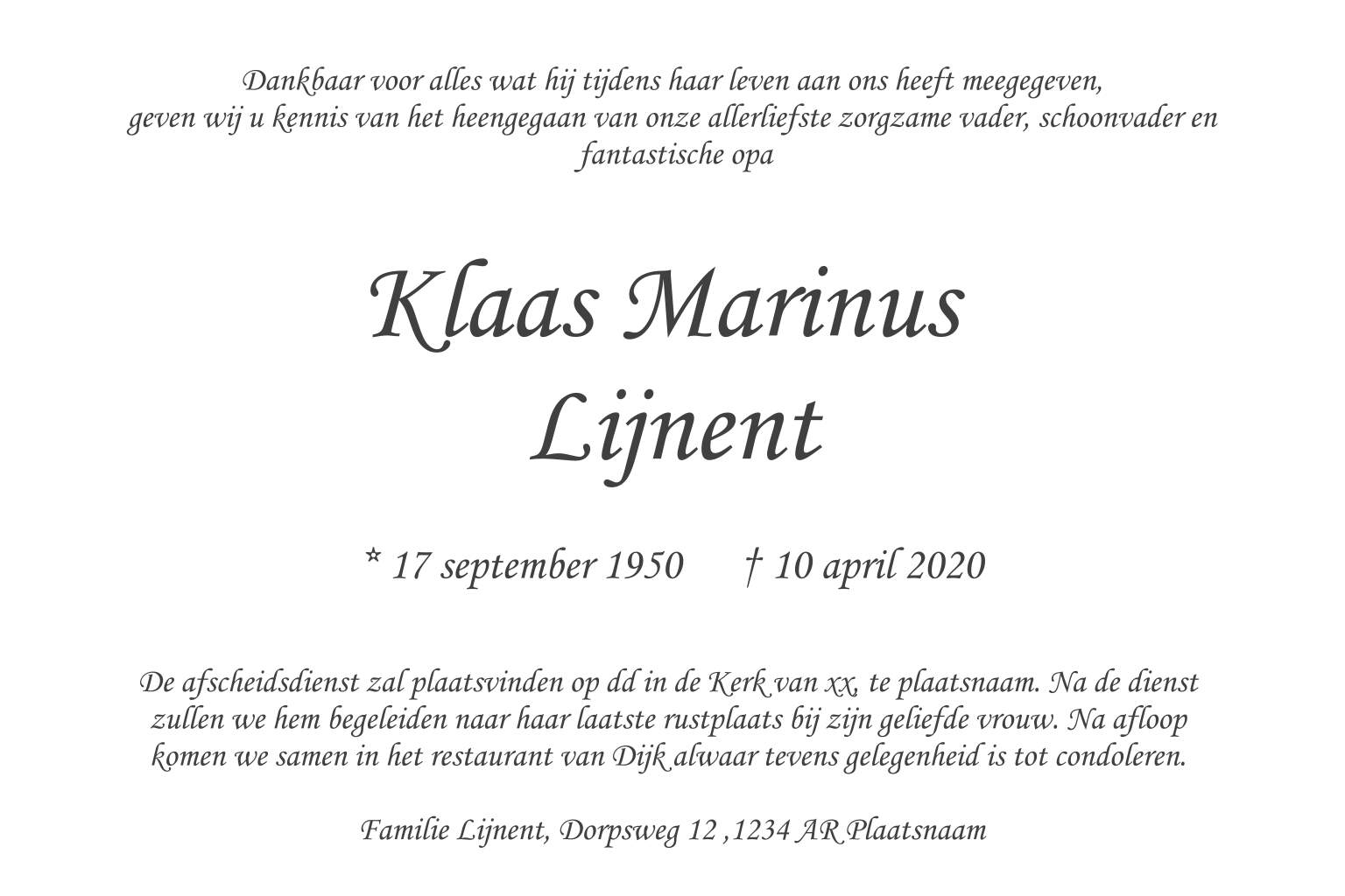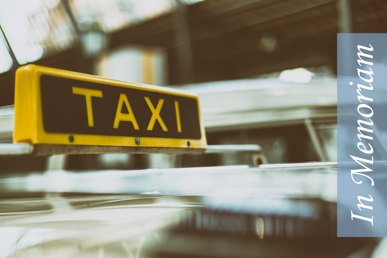 Rouwkaart voor een taxi chauffeur. Vervang de foto door een eigen foto. Tekst In memoriam kan verplaatst worden.