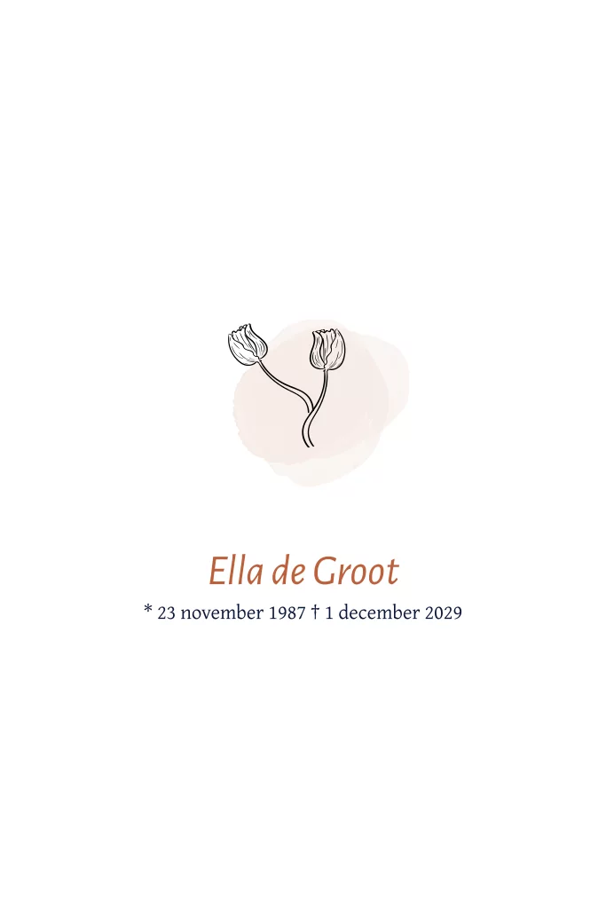 Rouwkaart met een kleine afbeelding van een tulp op roze waterverf. (1161)