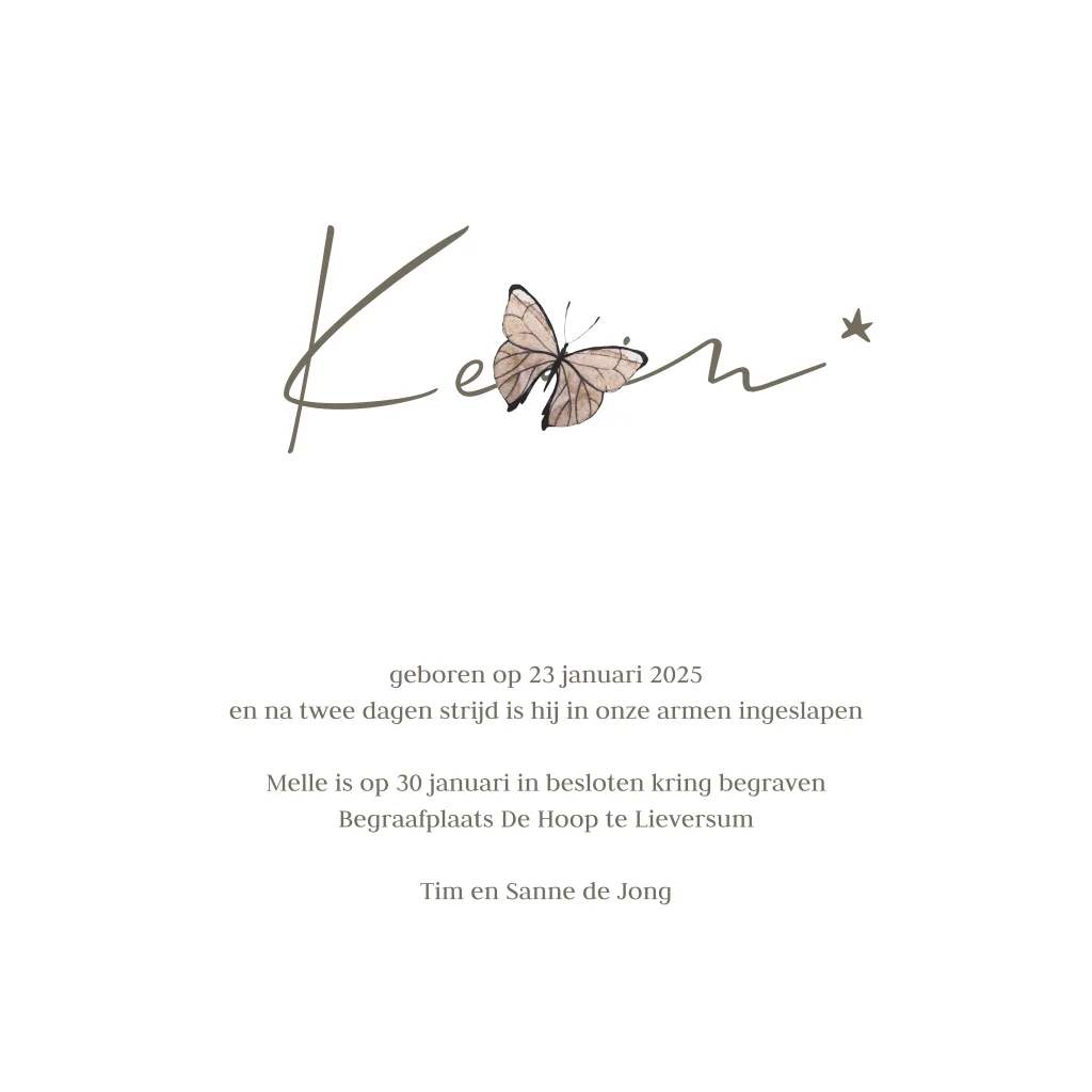 Rouwkaart met vlinder voor een baby of kindje. (977)