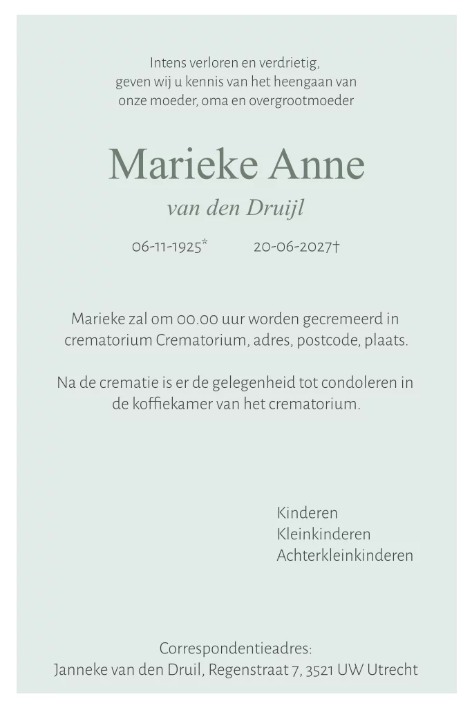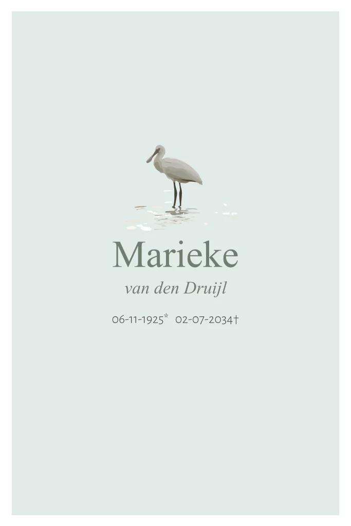 Rustige rouwkaart met een aquarel van een lepelaar. (1221)