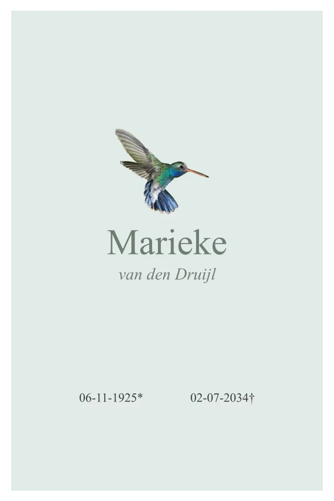 Rouwkaart met een getekende vogel kolibrie. (1213)