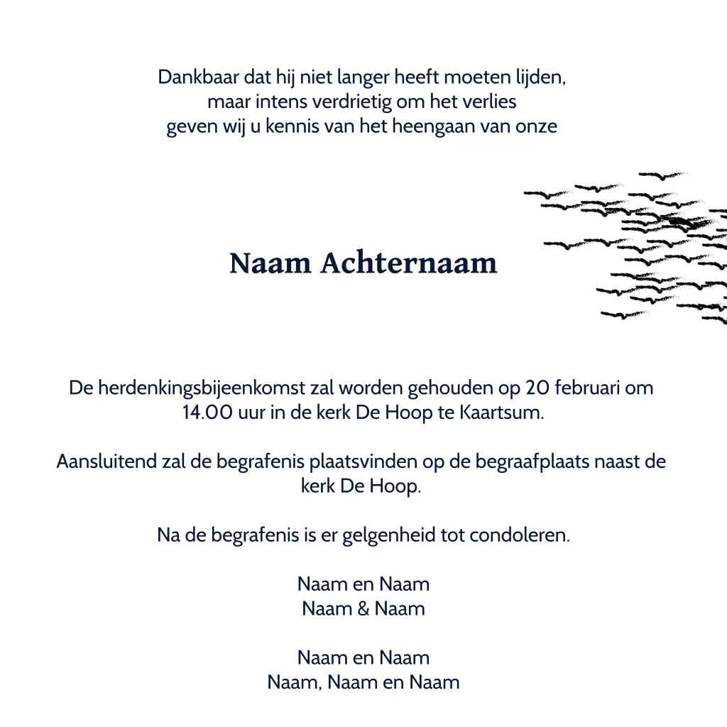 Rouwkaart vogels lucht in moderne kleuren blauw (582)
