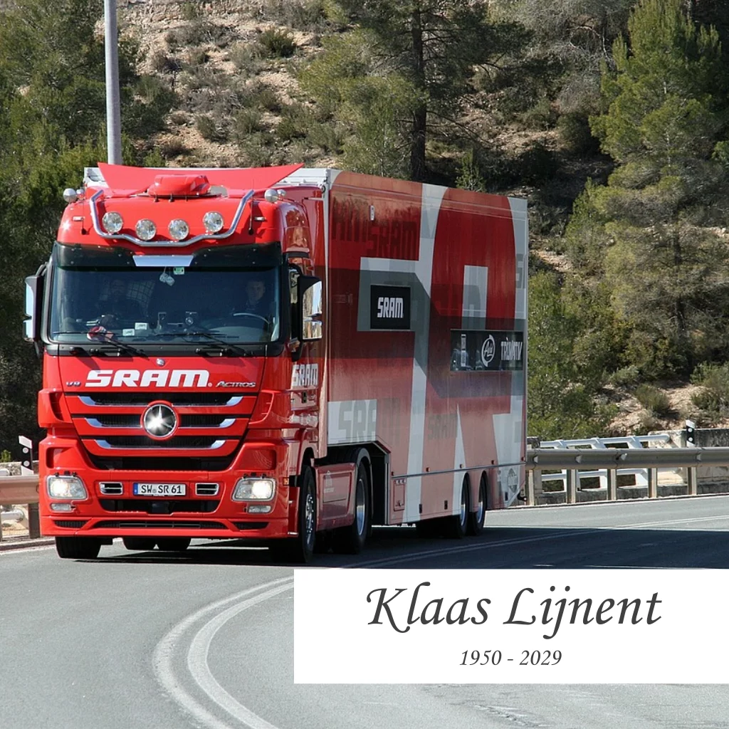 Rouwkaart voor een vrachtwagen chauffeur. Vervang de foto door een eigen foto/ Tekst In memoriam kan verplaatst worden.