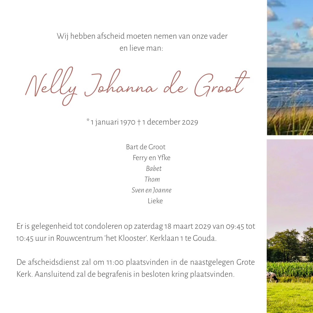 Rouwkaart vrouw fotocollage mooie herinneringen