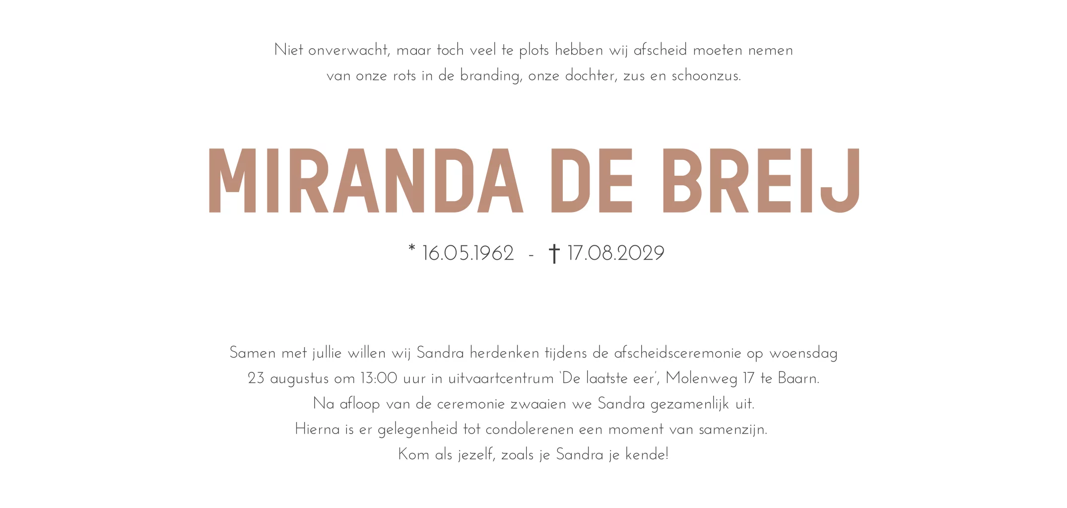 Rouwkaart vrouw met koolmeesje op bloesem tak