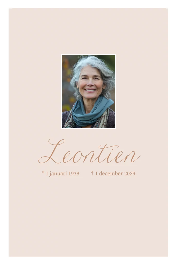 Rouwkaart voor een vrouw. Modern met ruimte voor het plaatsen van een eigen foto. (1280)