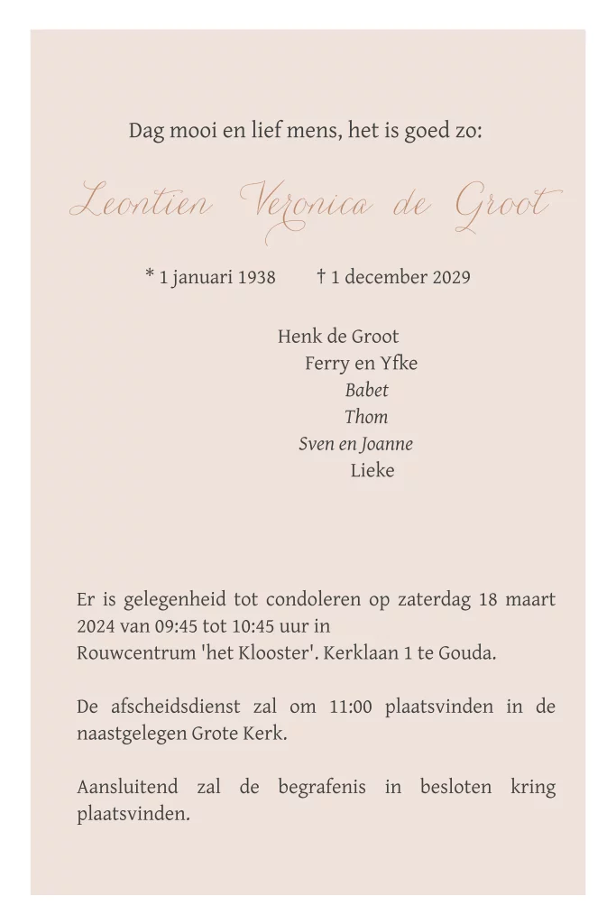 Rouwkaart voor een vrouw met moderne achtergrond kleur en foto