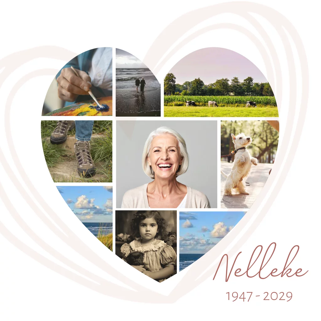 Rouwkaart vrouw foto collage hartje hobby natuur interesse