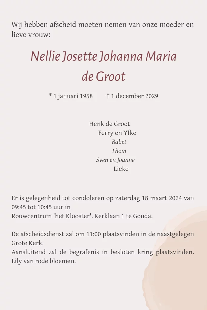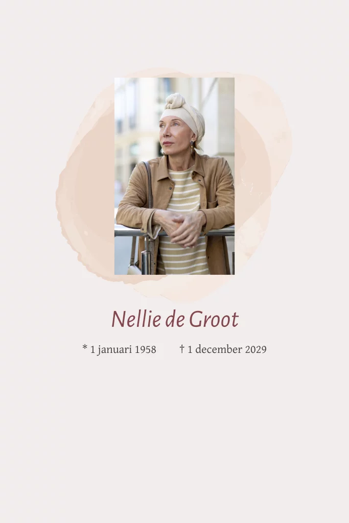 Moderne rouwkaart voor een vrouw met ruimte voor een eigen foto op roze watercolor. (1169)