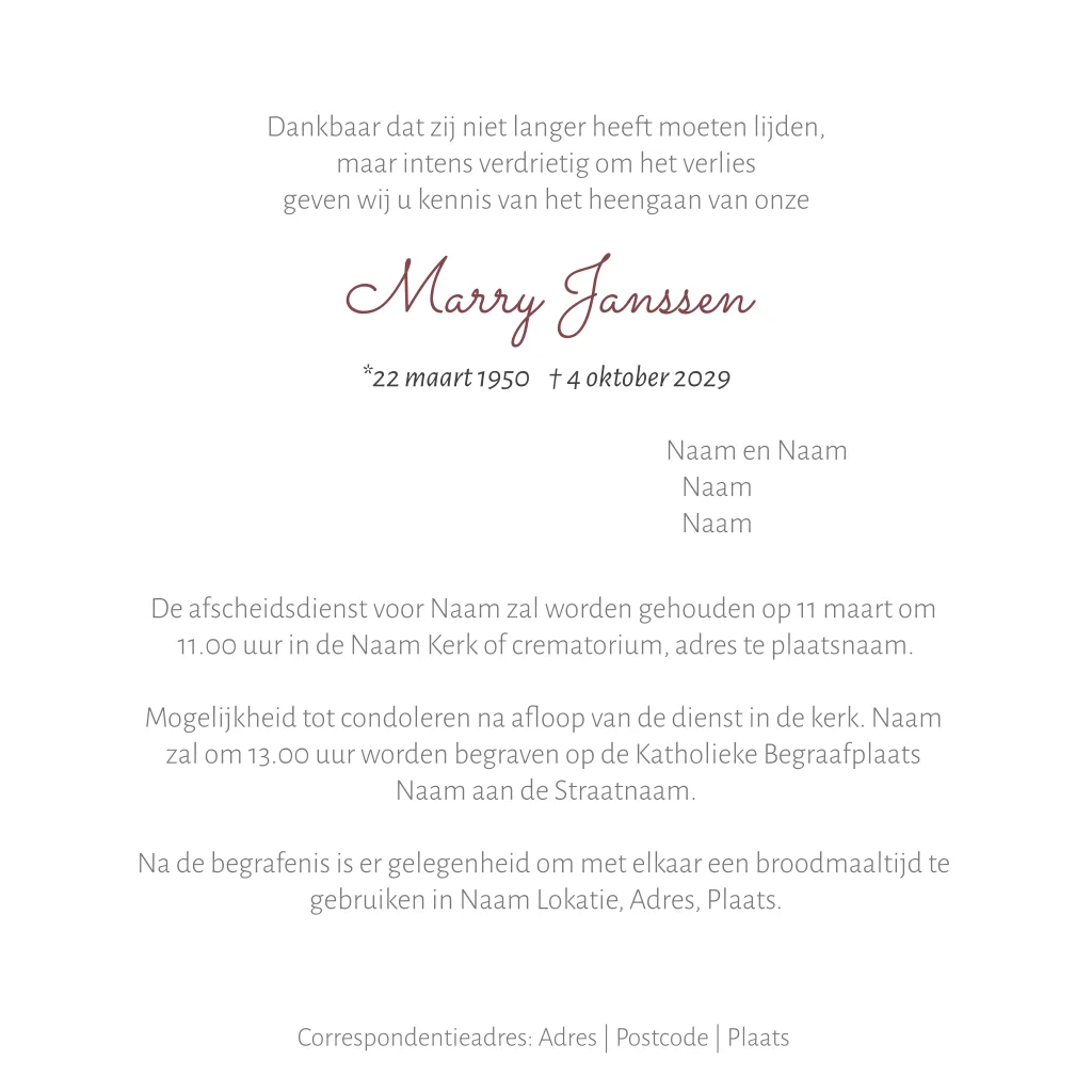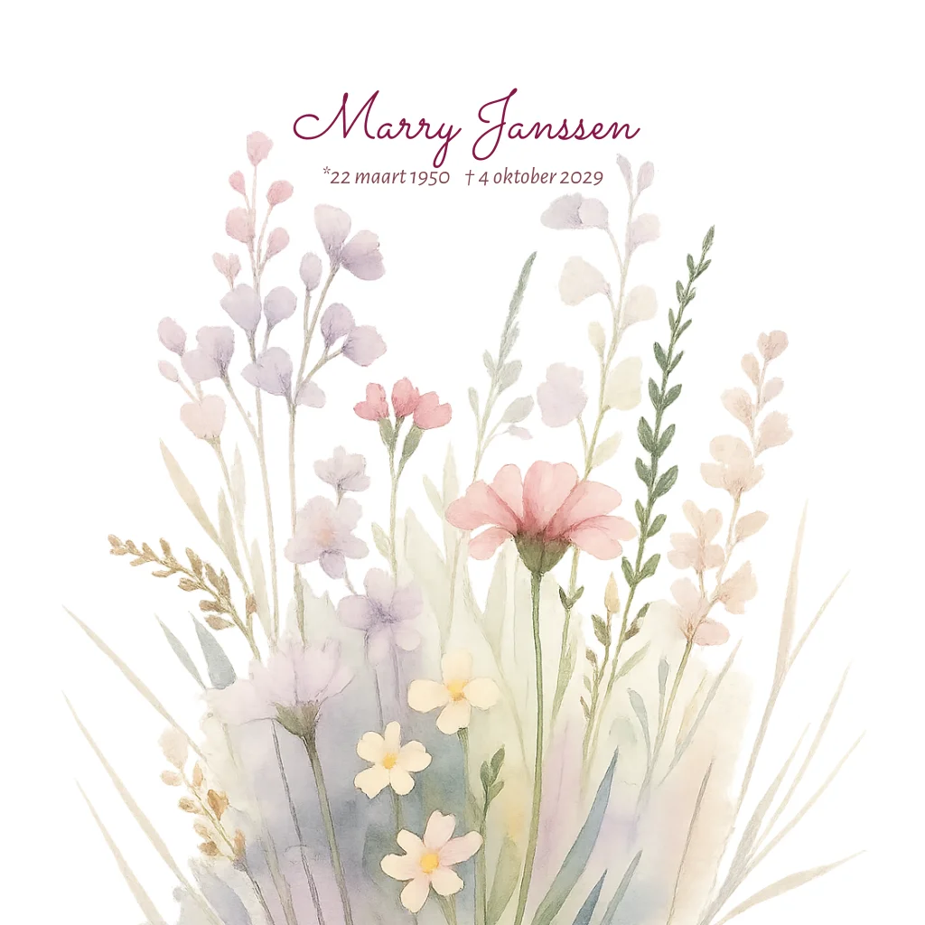 Moderne rouwkaart voor een vrouw met een aquarel boeket van bloemen in verschillende pastel kleuren. (889)