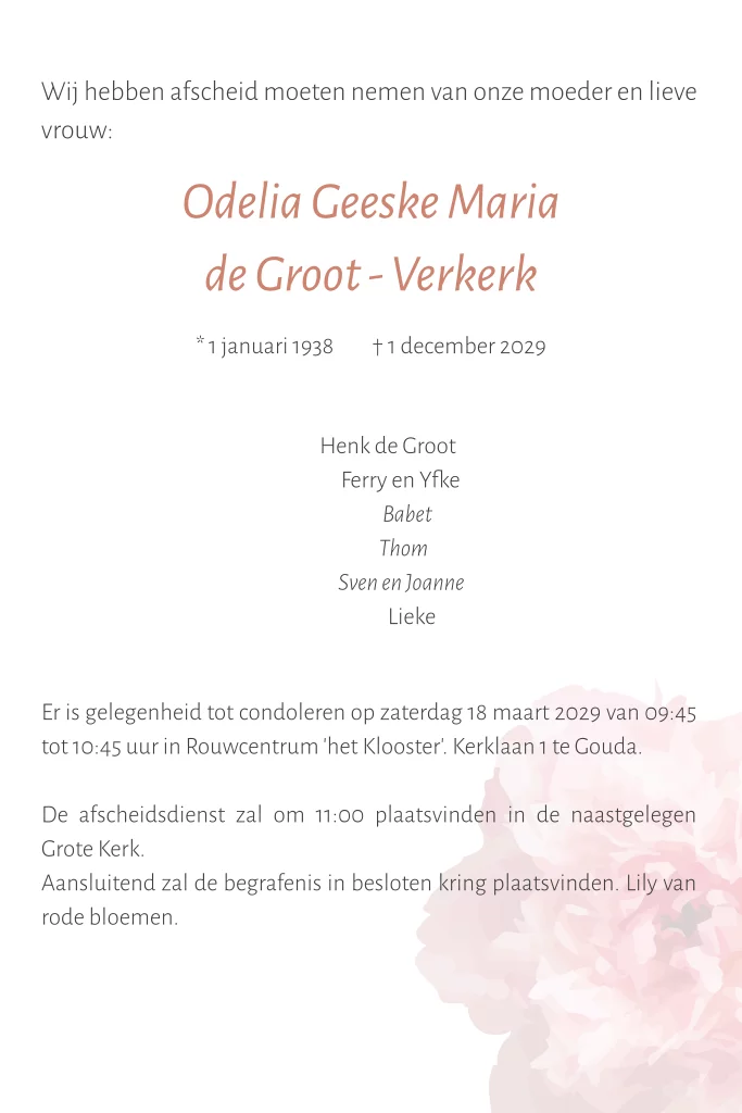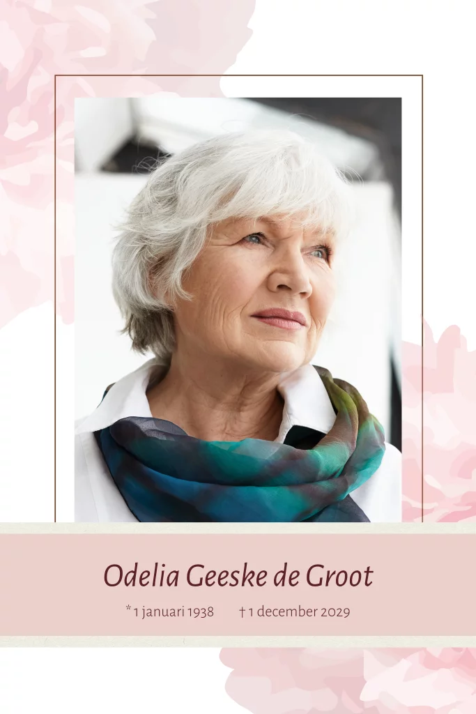 Rouwkaart met een aquarel van pioenrozen en plek voor een foto. (1200)
