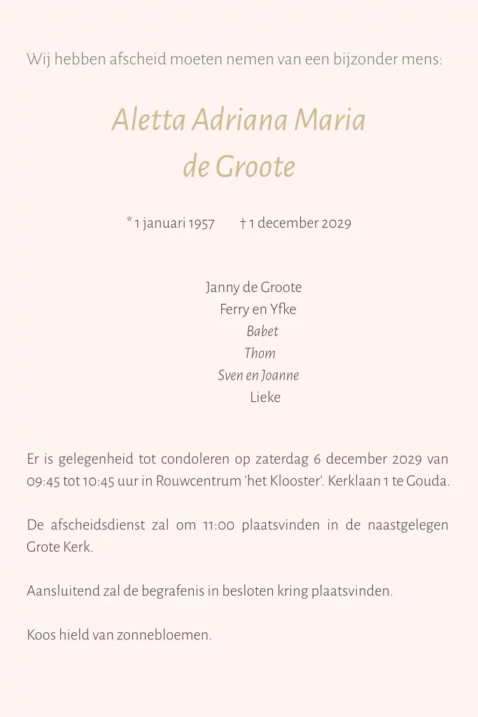 Rouwkaart voor een vrouw met madeliefjes en eigen foto
